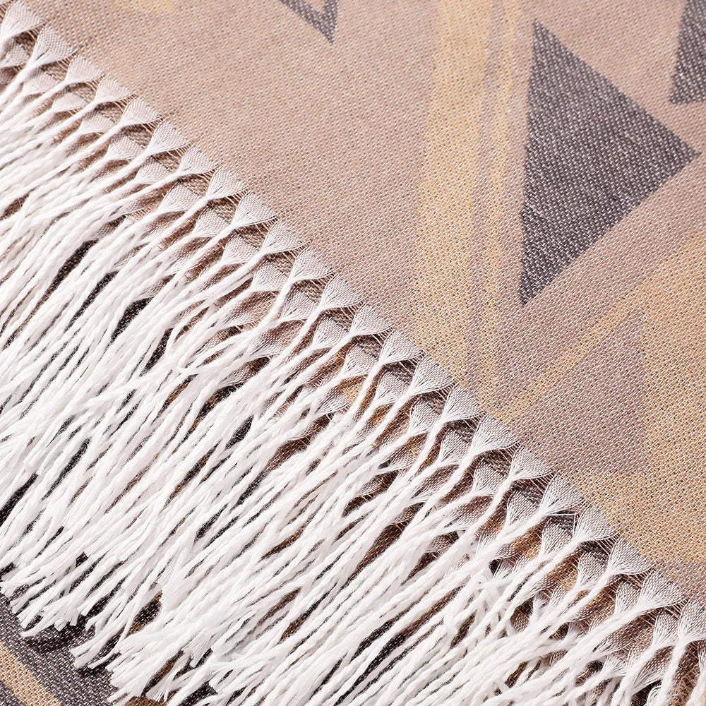 • Dual-Purpose Geometric Tassel Scarf :Designed as a dual-purpose geometric tassel scarf, this accessory can be worn as a scarf or a shawl, offering versatility in your wardrobe.