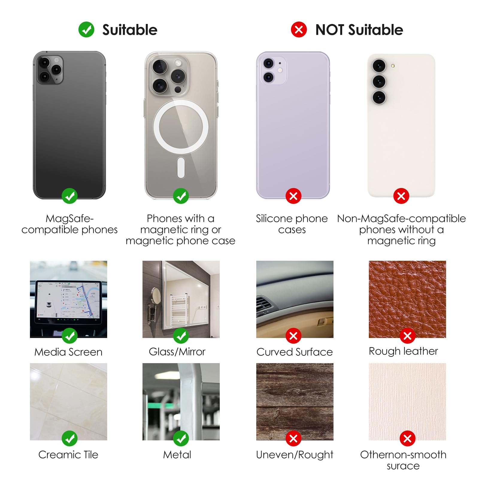 When utilizing the magnetic side, if the surface of the phone case is not smooth, the suction effect not be good. It is recommended to remove the phone case, or put a transparent sticker on your phone case before suction.